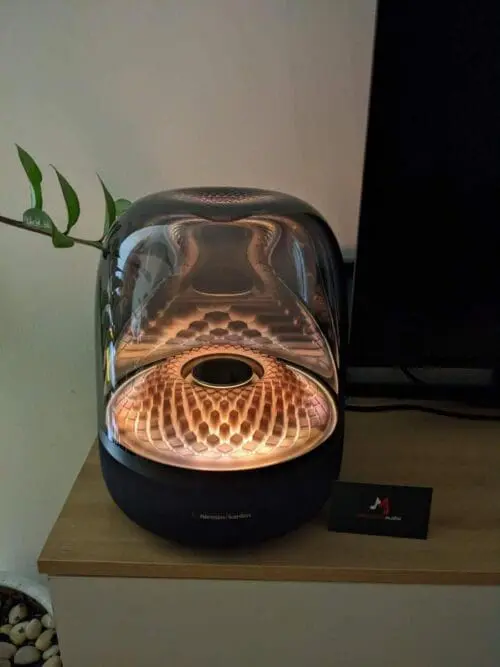 اخیرا هارمن/کاردون در حال تجدید نظر در یکی از طرح های خود برای ارائه یک محصول کاملا جدید است. اسپیکر بلوتوث Aura Studio 4 که از نظر بصری می توان گفت نسلی از SoundSticks است که توسط Jonny Ive طراحی شده است. در مورد مشخصات، از همان طراحی واضح و قابل توجه و توجه به جزئیات استفاده می کند، اما کمی مدرنیته قرن 21 را نیز دارد.همانند هر سه محصول جدید، Aura Studio 4 تا حد امکان از مواد بازیافتی استفاده می کند. شش درایور بلندگو درایورهای باس 132 میلیمتری را تقویت میکنند تا بازترین و دقیقترین صدای ممکن را ایجاد کنند، در حالی که 324 کریستال مجزا در بخش پایینی شفاف بلندگو، بخش چشمنوازی از بازتولید صدا را از این بلندگو ایجاد میکنند.طراحی خلاقانه استودیو 4 توجه همه را به خود جلب می کند. دکمه های بسیار کمی روی این اسپیکر بلوتوث وجود دارد. این دکمه ها دکمه بلوتوث، تغییر صدا و دکمه تغییر نور هستند. قرار ندادن دکمه ها و جزئیات بی اهمیت باعث شده است که Aura Studio 4 ظاهر مینیمالیستی خود را حفظ کند. هارمن کاردون با طراحی شفاف اسپیکر خود توانسته افکت های نوری ظریف و زیبایی را به نمایش بگذارد که وظیفه نور ال ای دی 360 درجه را بر عهده دارد که مانند یک اثر هنری هماهنگ با ریتم موسیقی روشن می شود. به طوری که ناحیه تابش نور حس و حال متفاوتی به موسیقی شما با توجه به ملودی می دهد. اگر Harman Kardon Aura Studio 4 را در یک محیط نسبتا تاریک رها کنید. حرکت ملایم چراغ ها حس خوبی را به ارمغان می آورد. به خصوص زمانی که در حال استراحت و گوش دادن به موسیقی آرام هستید.کیفیت صدای بلندگو Harman Kardon Aura Studio 4