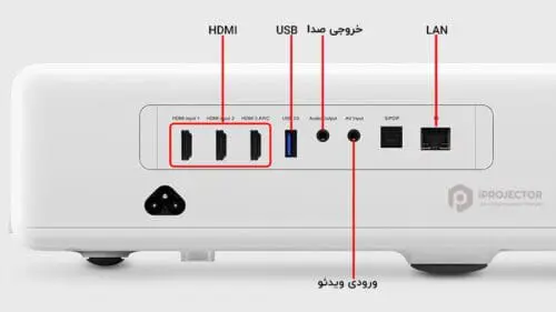 یک عکس خوب باید با صدای خوب همراه باشد. پروژکتور لیزری شیائومی دارای همان سیستم بلندگوی ساخته شده برای Mi TV است، دارای بلندگوی دوگانه داخلی با کیفیت بالا است و از سیستم DOLBY، DTS پشتیبانی می کند. بنابراین می توانید تجربه صوتی و تصویری در سطح سینما را در خانه داشته باشید.بلندگوهااتصالات و پورت های ورودی و خروجیویدئو پروژکتور Mi Laser 150 دارای تمامی پورت های لازم می باشد. دارای سه پورت HDMI است که از نسخه 2.0 پشتیبانی می کند و به راحتی می توانید حتی فیلم های 4K را از کامپیوتر، کنسول های بازی و … پخش کنید و همچنین اسپیکر و میکروفون را به ویدئو پروژکتور متصل کنید./کانکتورها-و-پورت ها-Mi-Laser-Projector-150ویژگی های نرم افزار دیتا پروژکتور Xiaomi Mi Laser 150این ویدئو پروژکتور لیزری دارای سیستم عامل اندروید تی وی بوده و به راحتی به اینترنت متصل می شود. همچنین دارای بلوتوث و وای فای و امکانات اتصال فلش است. با 2 گیگابایت رم و 16 گیگابایت حافظه داخلی می تواند فیلم ها و تصاویر مورد علاقه شما را بدون اتصال به منبع ورودی پخش کند. گوگل این نسخه از Android TV را به طور خاص برای تلویزیون ها و دستگاه هایی غیر از تلفن همراه طراحی کرده است. و همه نرم افزارهای معمولی گوشی هوشمند را نمی توان روی آن نصب کرد. نرم افزار Mx player و نرم افزار مدیریت فایل به راحتی نصب می شوند.دارای Android TV – ویدئو پروژکتور شیائومی[/fusion_text][/fusion_builder_column][/fusion_builder_row][/fusion_builder_container]