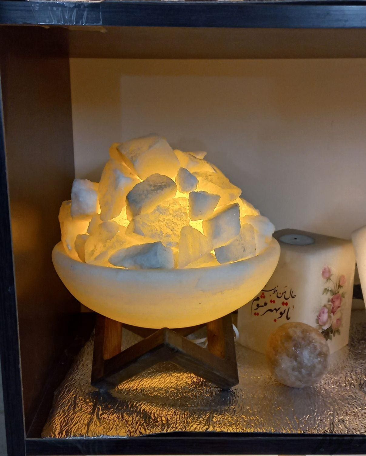 آباژور سنگ نمک با تیکه سنگ معمولی