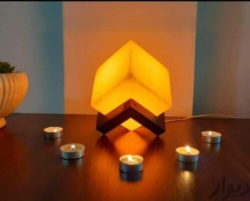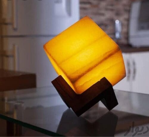 آباژور سنگ نمک طرح مکعب چراغ دار