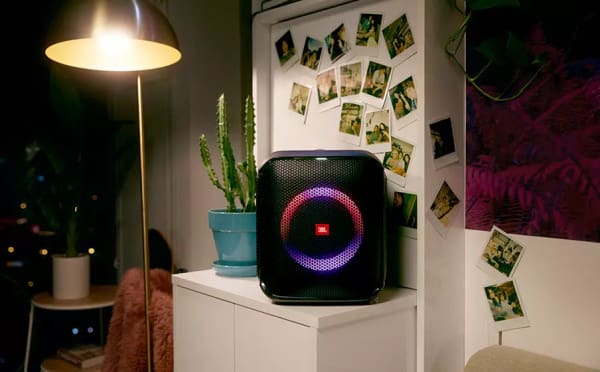 اسپیکر بلوتوثی قابل حمل جی بی ال مدل Partybox Encore Essential اورجینال پلمپ به همراه دو عدد میکروفن