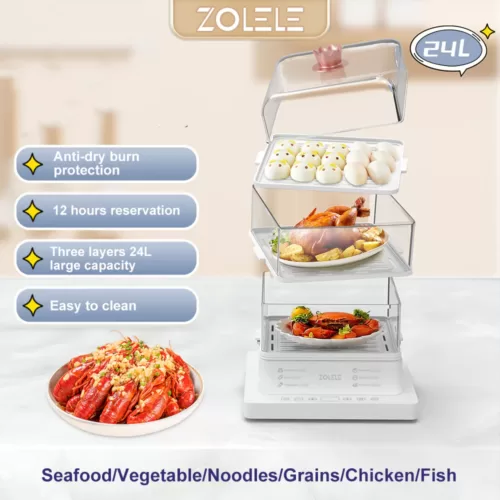 مشخصات بخارپز برقی سه لایه Zolele ZM100 (پلمپ اورجینال ارسال فوری)
