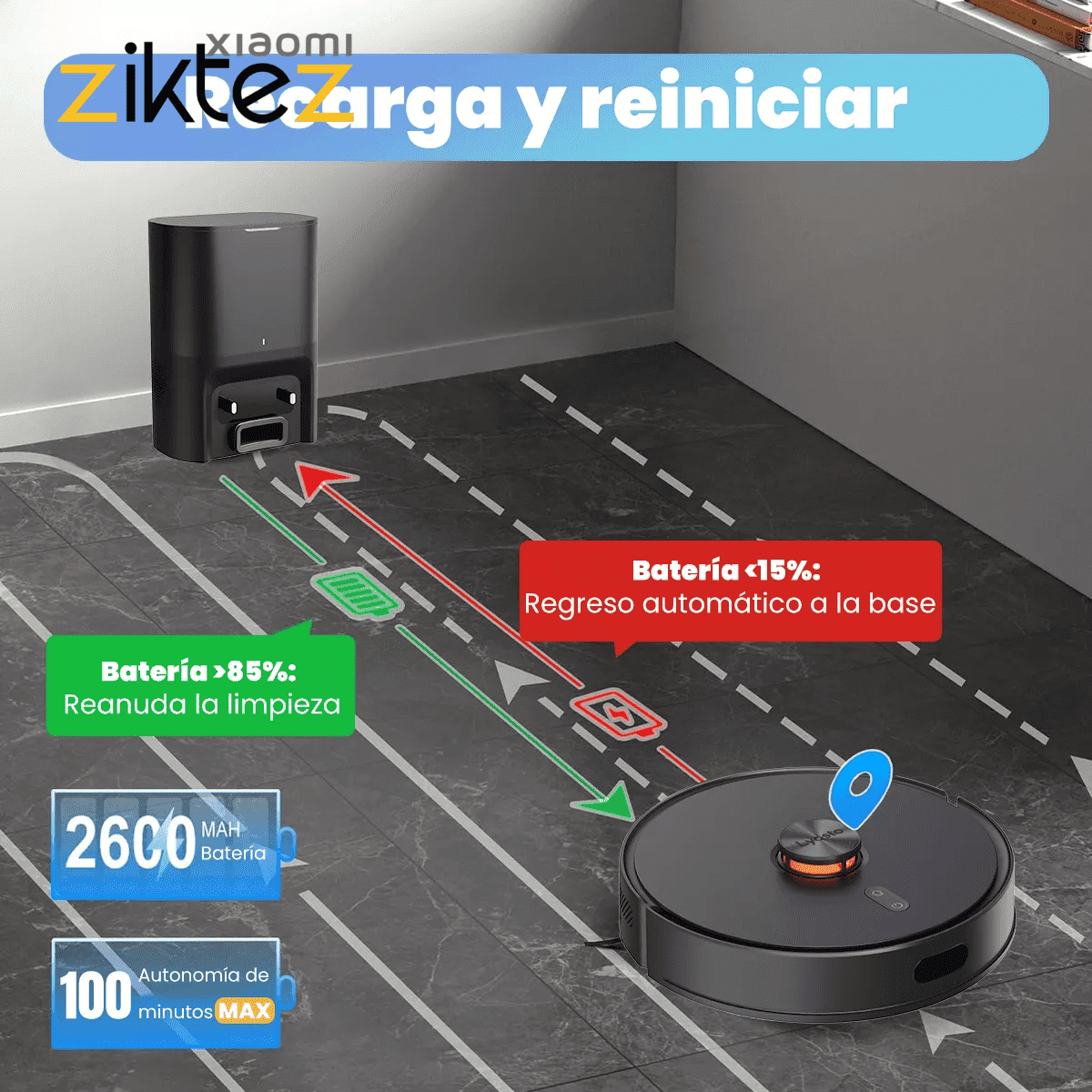 اگر شارژ ربات به کمتر از ۱۵٪ برسد، بهطور خودکار به داک بازمیگردد و پس از شارژ کامل، کار را دقیقاً از همان نقطهای که متوقف کرده بود ادامه میدهد. دیگر نیاز به نظارت شما نیست!