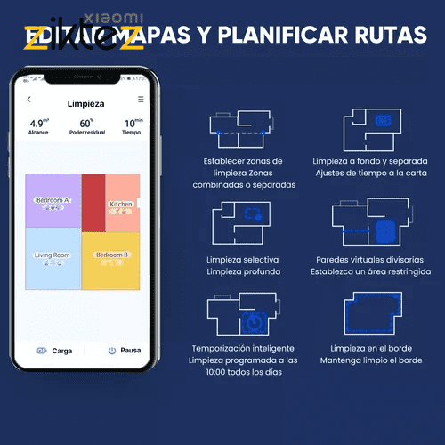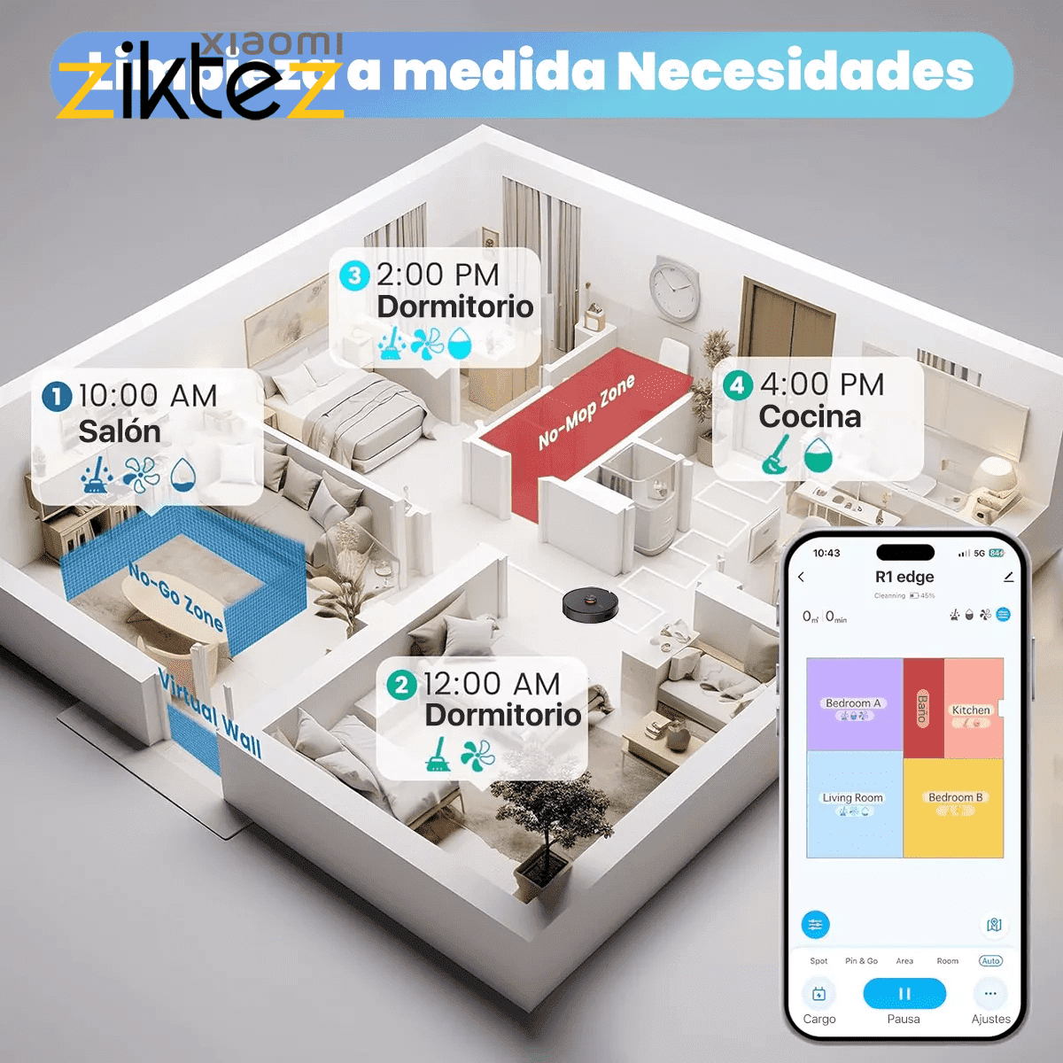 تنظیم و کنترل ربات از طریق موبایل، حتی وقتی خانه نیستید! فقط با چند کلیک میتوانید برنامههای نظافت، محدودیتهای حرکتی و اولویتهای تمیزکاری را تعریف کنید.