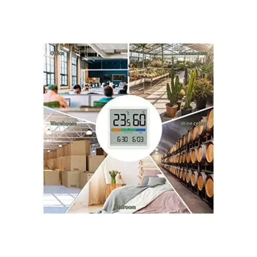 روی صفحه نمایش دستگاه می توانید رنگ های مختلفی را مشاهده کنید که هر کدام معنای خاص خود را دارند. رنگ نارنجی بیانگر محیط خشک و رطوبت کم (رطوبت کمتر از 30 درصد) است. رنگ سبز نشان می دهد که رطوبت محیط در حد نرمال است (رطوبت بین 30 تا 60 درصد). رنگ آبی همچنین نشان دهنده سطح بالای رطوبت محیط اطراف شما (رطوبت بالای 70 درصد) است.
