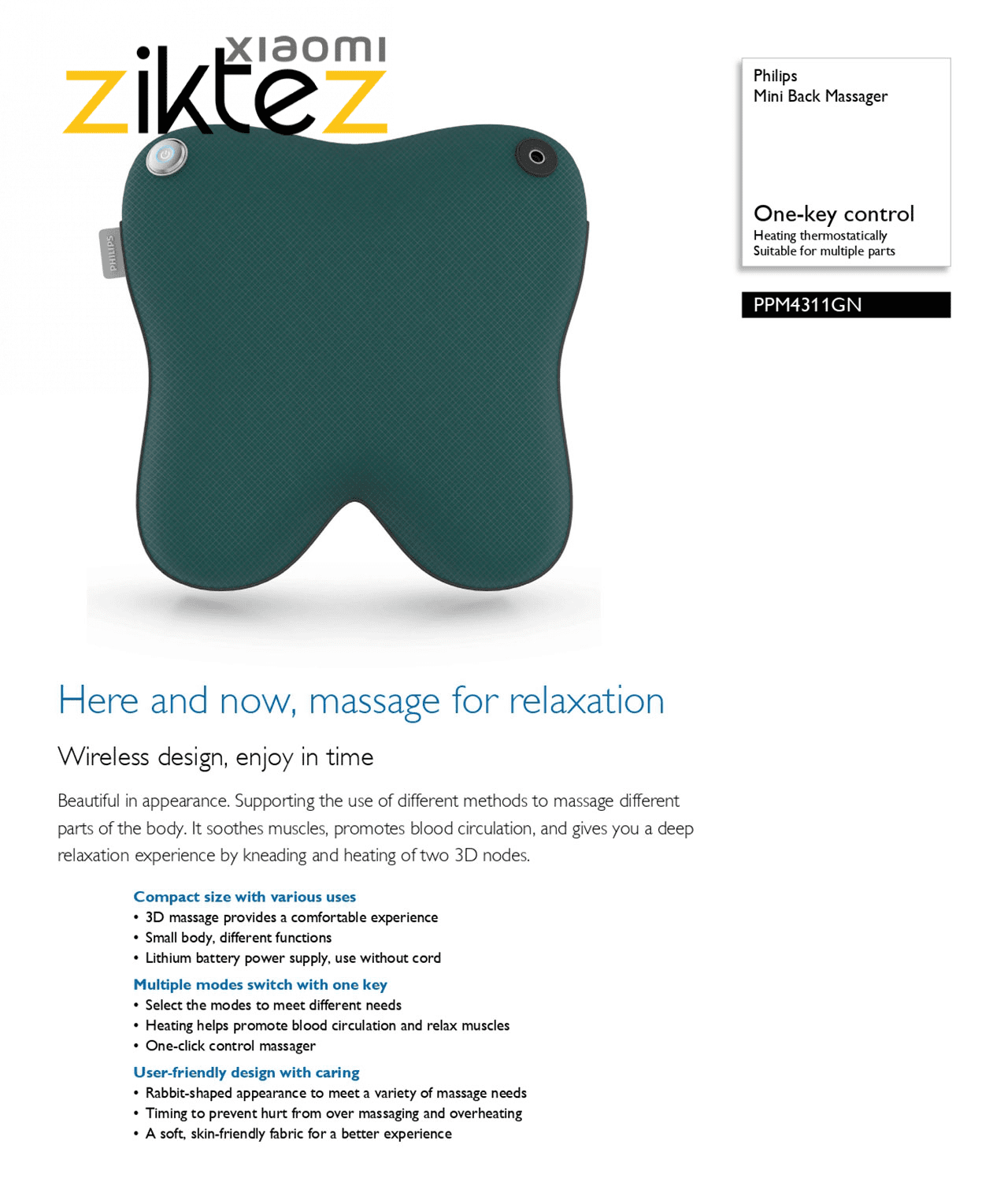 مشخصات ماساژور کمر و گردن حرارتی فیلیپس Massager Philips PPM3101 / PPM4311 (اورجینال)