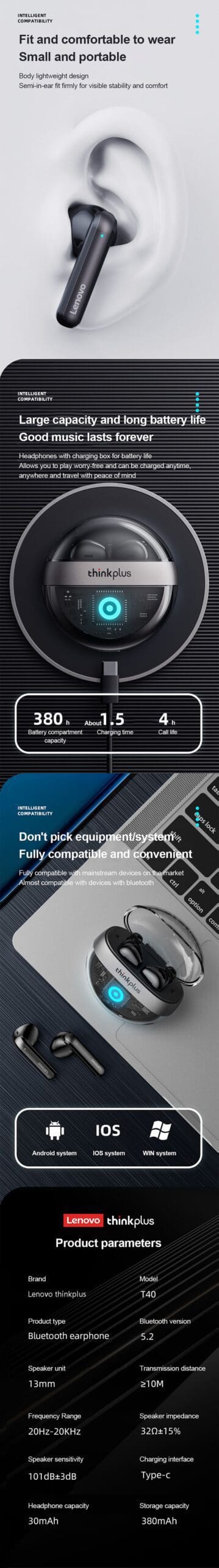 مشخصات هدفون بلوتوثی لنوو lenovo T40 با اورجینال گارانتی