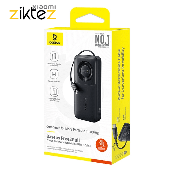 یکی از ویژگیهای متمایز پاوربانک بیسوس Free2Pull، کابل USB-C داخلی با قابلیت جمعشدن است. این کابل بهطور هوشمندانه در بدنه پاوربانک جاسازی شده و تنها با یک حرکت ساده به بیرون کشیده میشود. این طراحی خلاقانه به شما کمک میکند تا همیشه کابل موردنیازتان را همراه داشته باشید، بدون اینکه نگران گره خوردن یا گمشدن آن باشید.