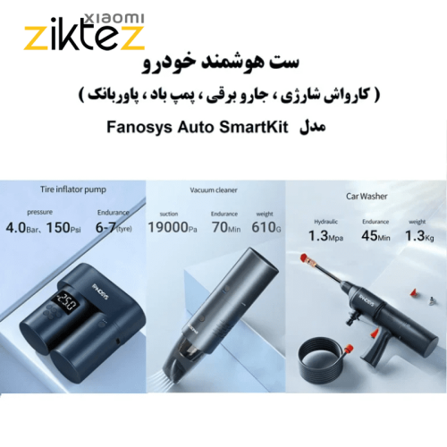 کارواش شارژی ، جارو شارژی ، پمپ باد ، پاوربانک خودرو Fanosys Auto SmartKit (اورجینال ارسال فوری)