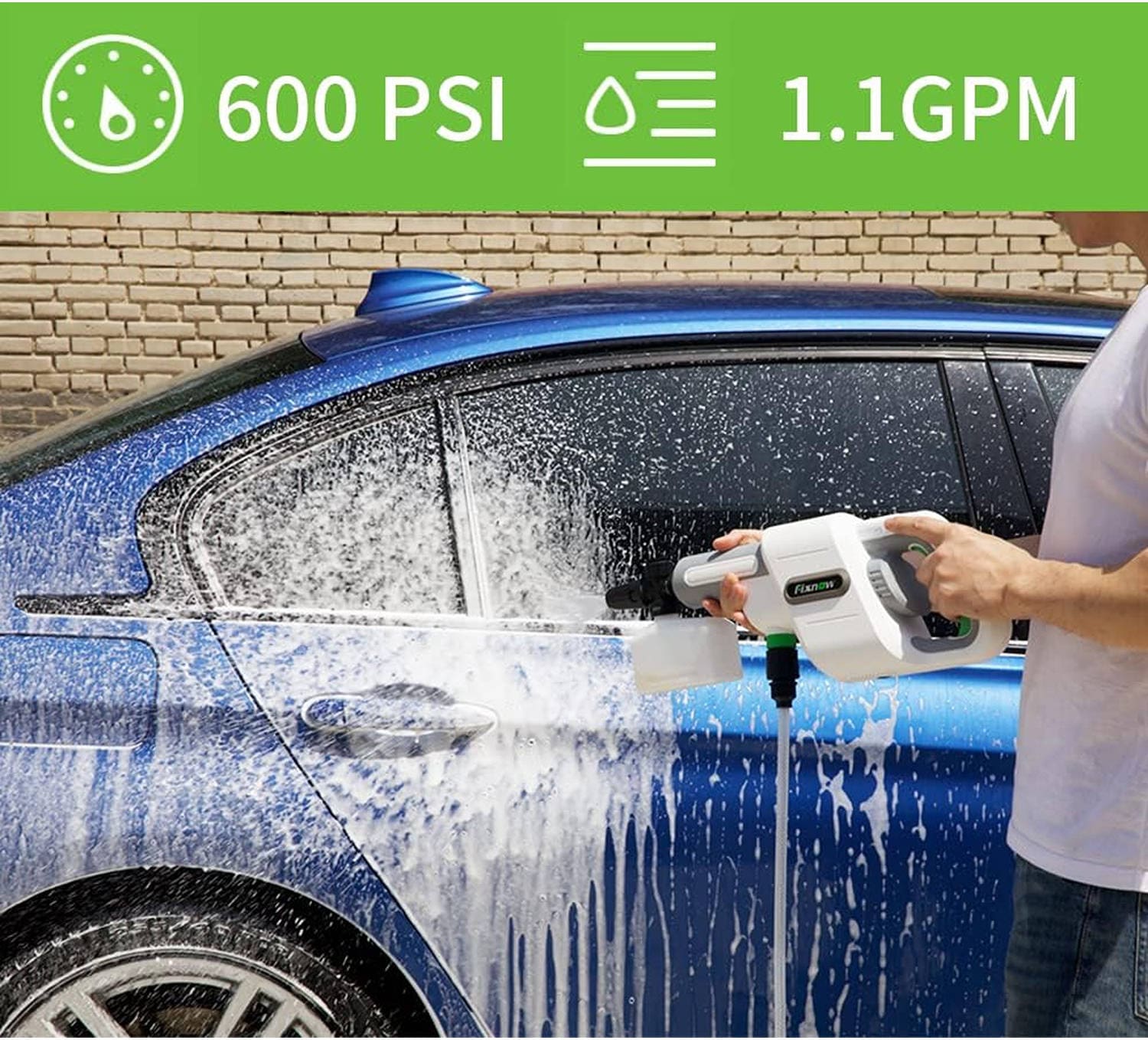 کارواش دستی شیائومی Mi FixNow از موتور الکتریکی قدرتمندی بهره می برد که حداکثر فشار آب 2.4 مگاپاسکال را تامین می کند و توانایی پاشش 180 لیتر آب در ساعت را دارد. مخزن نگهداری مواد شوینده و 6 باتری 2600 میلی آمپر ساعتی از ویژگی های جذاب این کارواش دستی است.