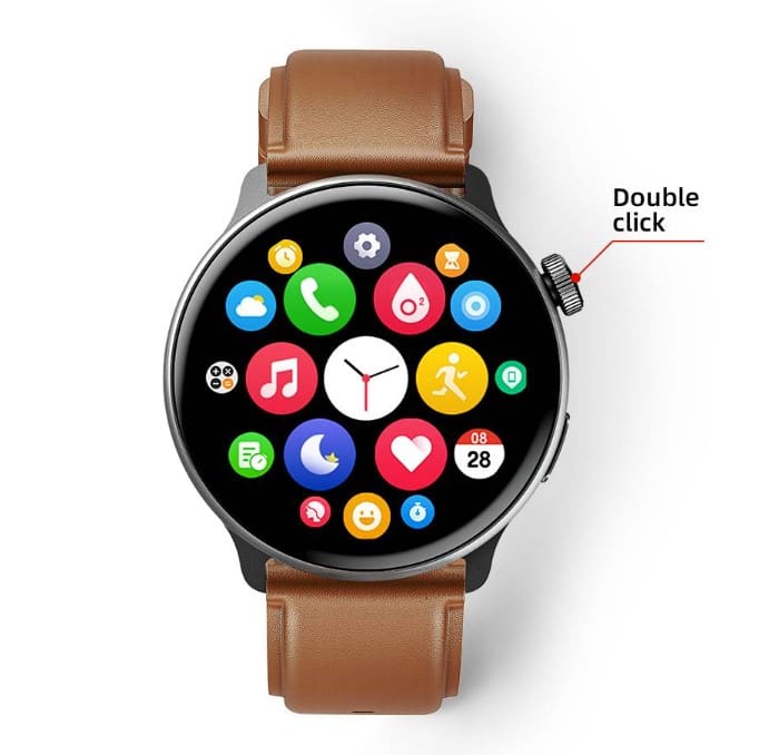 در قسمت سمت راست یک کلید چرخان و یک دکمه قرار گرفته که برای روشن/خاموش کردن ساعت و صفحه نمایش، جابجایی در منو و … استفاده می شود. در قسمت منو با دوبار فشوردن دکمه ی چرخشی میتوانید استایل منو را تغییر دهید.
