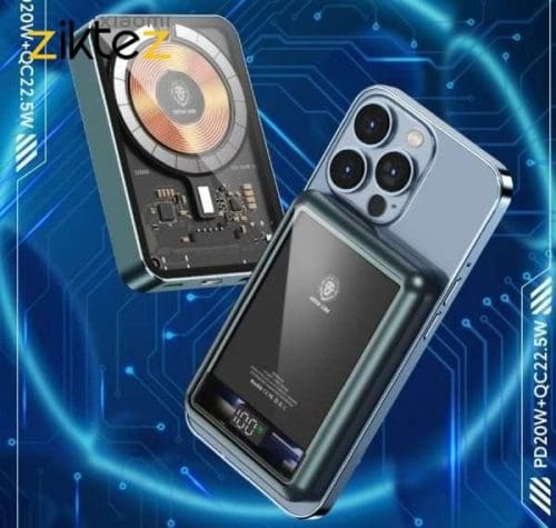 قابلیت شارژر وایرلس مگنتی این پاوربانک فقط مناسب آیفون های سری 12 به بعد اپل است که از شارژ مگ سیف پشتیبانی میکنند. پاوربانک Green Lion Transparent MagSafe با قابلیت مگ سیف مناسب گوشی های آیفون 12 و جدیدتر است و به صورت مگنتی به آنها میچسبد و وایرلس شارژ می کند. حداکثر توان خروجی وایرلس آن 15 وات است. البته به دو پورت USB و تایپ سی هم مجهز است تا به صورت سیمی و با توان به ترتیب 22.5 و 20 وات دستگاه های خود را شارژ کنید. ویژگی های ظاهری پاوربانک Green Lion Transparent MagSafe دارای بدنه ای شفاف است و می توانید مدارها و اجزای داخلی آن را ببنید. ظرفیت اسمی پاوربانک گرین برابر 10000 میلی آمپر ساعت است. ظرفیت واقعی پاوربانک ممکن است پایین تر باشد. آهنرباهای استفاده شده در پاوربانک گرین لاین Transparent MagSafe قوی است که گوشی شما را محکم نگه می دارد. صفحه نمایش دیجیتالی به شما کمک می کند تا از میزان شارژ پاروبانک مطلع شوید.مشخصات پاوربانک Green Lion Transparent Magsafe