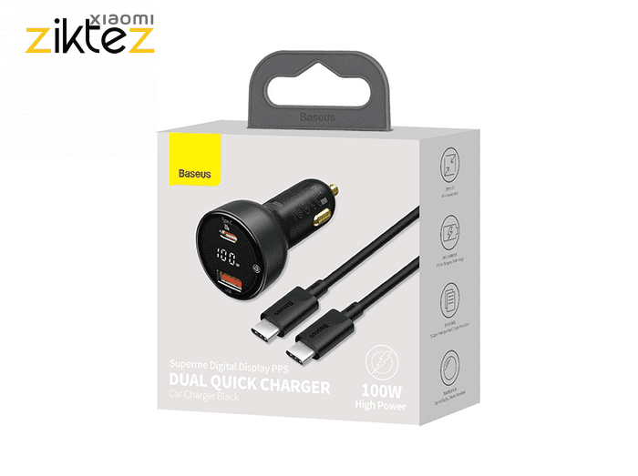 کمپانی بیسوس برای حل این مشکل توانسته شارژر فندکی 2 پورت Baseus Supreme Digital Display PPS را طراحی نماید این محصول دارای مجموع توان 100 وات است و دارای دو پورت تایپ سی و یو اس بی میباشد. همراه پک این شارژر یک کابل دو سر تایپ سی 100 واتی هم هست که میتوانید برای شارژ لپ تاپ از آن استفاده نمایید.