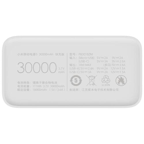 پاور بانک شارژ سریع شیائومی Xiaomi Youpin Mi Power Bank 3 30000MAh PB3018ZM(اورجینال پلمپ ارسال فوری)